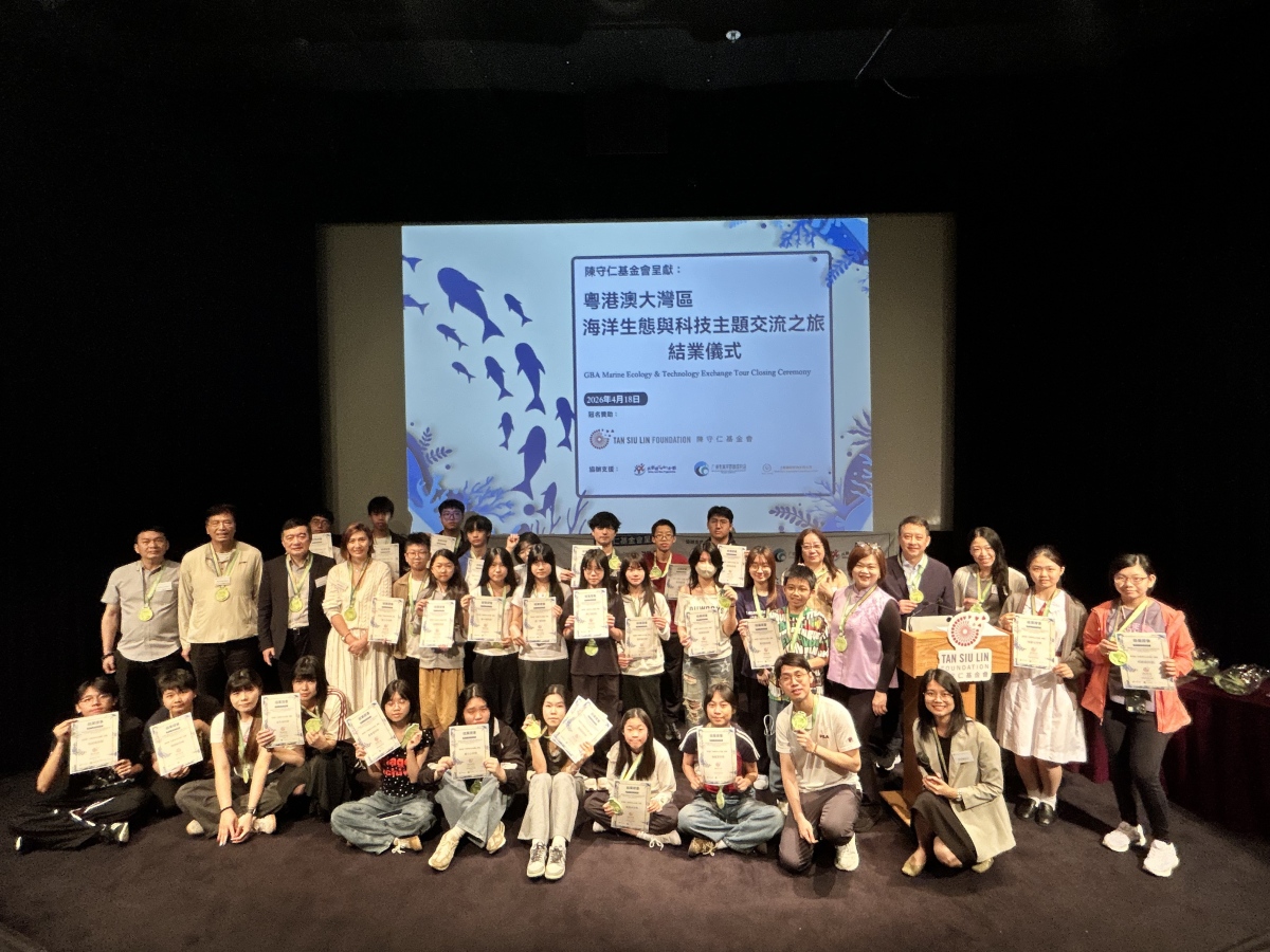 The Guangdong-Hong Kong-Macao Greater Bay Area Marine Ecology & Technology Study Tour, organised by the Tan Siu Lin Foundation ("TSL Foundation") , held its completion ceremony at the Louis Koo Cinema, Hong Kong Arts Centre today. With the aim of broadening participants' horizons as well as inspiring innovative thinking, the tour comprised of a 4day 3night journey from 9-12 April 2026 with around 40 students from the Strive and Rise Programme, while they had the opportunity to visit different sites in the Greater Bay area combining marine conservation and technological exploration.