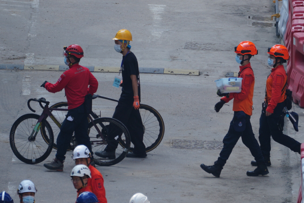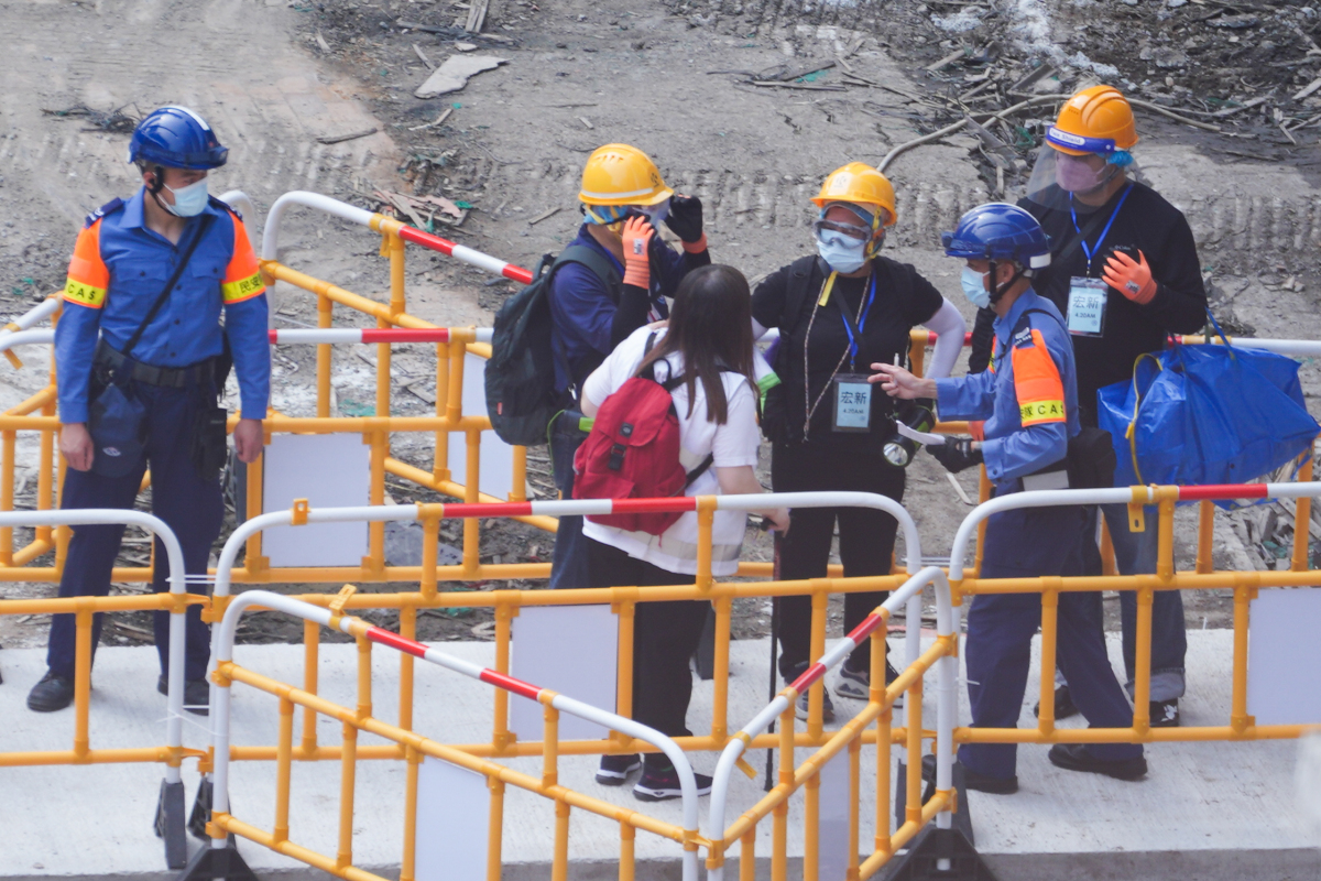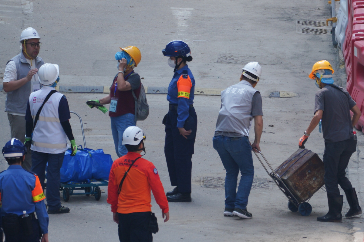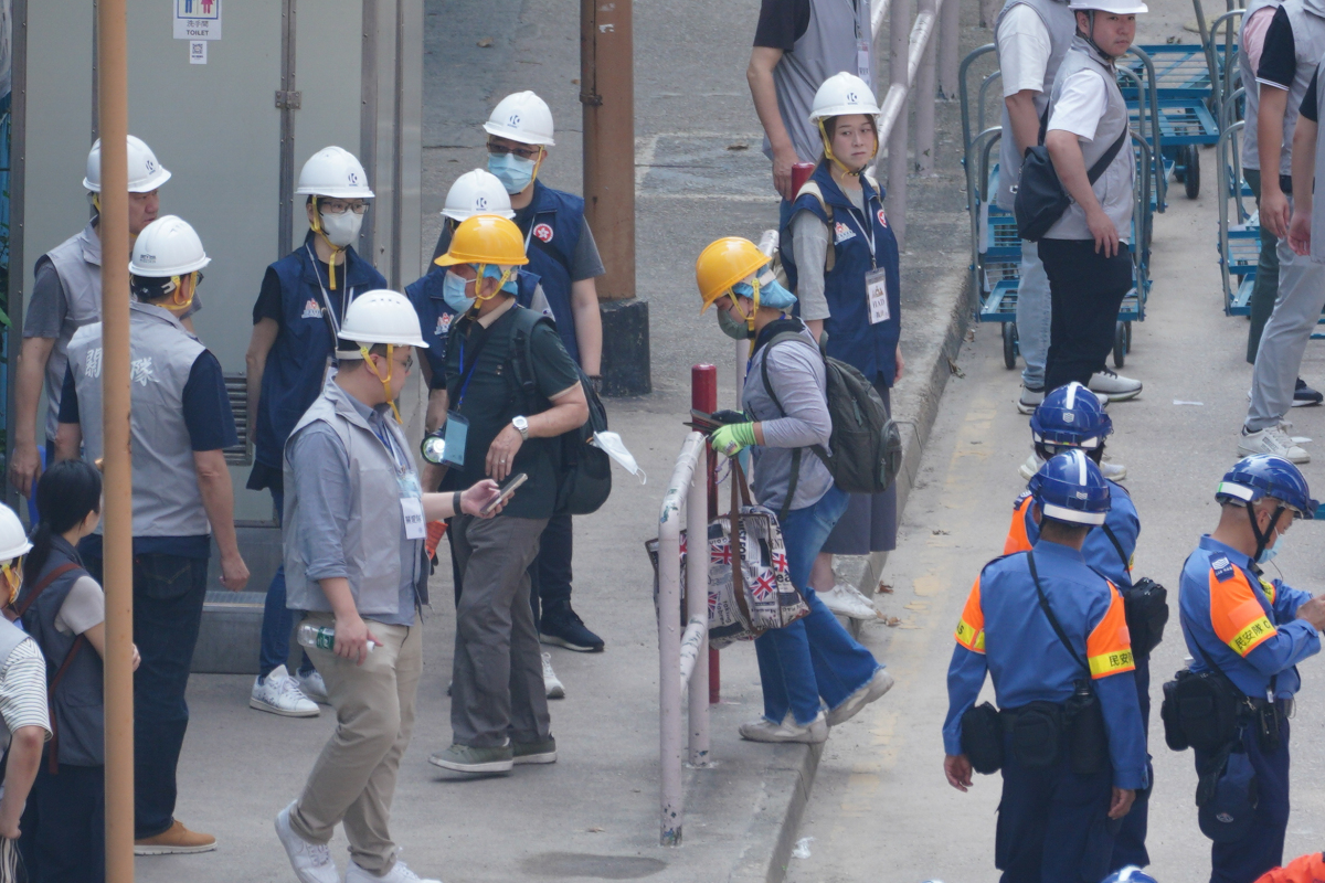 The government has set up a registration point at Kwong Fuk Community Hall to verify the identities of returning residents. A large blue tent has been erected outside the hall for residents to queue and rest. Large numbers of government emergency response team personnel and "Care Team" members arrived at around 7 am to make preparations. Several roads near Wang Fuk Court have been closed, allowing access only to authorised vehicles.